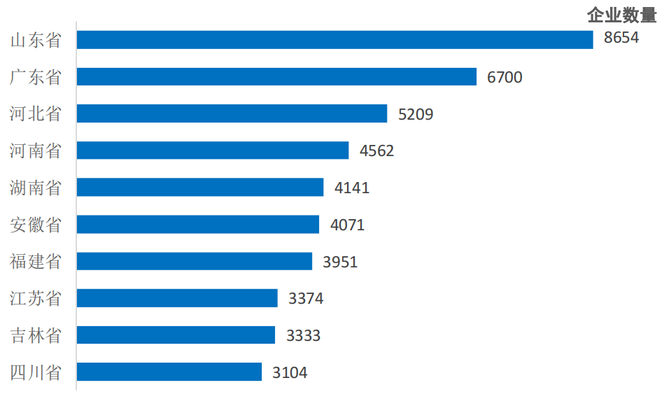 图2-4 预制菜企业数量Top10省份(截至2022年12月31日)(图表数据来自毕马威《2022年中国餐饮企业成长演讲》)!