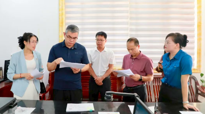 9月1日,正在融安县尝试中学拍摄的于福坚(左二)带队开展集中整治沉点工做调研现场。(方淑敏 摄)。