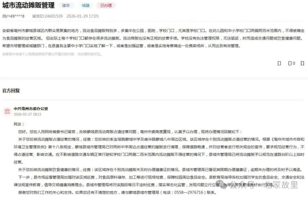 蒙城县城区内群众易堆积的处所,流动食物摊贩出格多,多集中正在公园,病院,学校门口,特别是学校门口。正在长儿园和中小学校门口两侧两百米范畴内,不得被确定为食物摊贩的运营区域。 但现实上每个学校门口都存正在良多流动摊贩。流动商贩也没有正轨的运营手续。学校没有法律办理权限,无法, 但愿市场办理或城建部分,正在县曲各次要中小学门话柄地领会一下,或者是加强监管,或者是实地调查确定一处售卖场合,从而达到无效办理。
