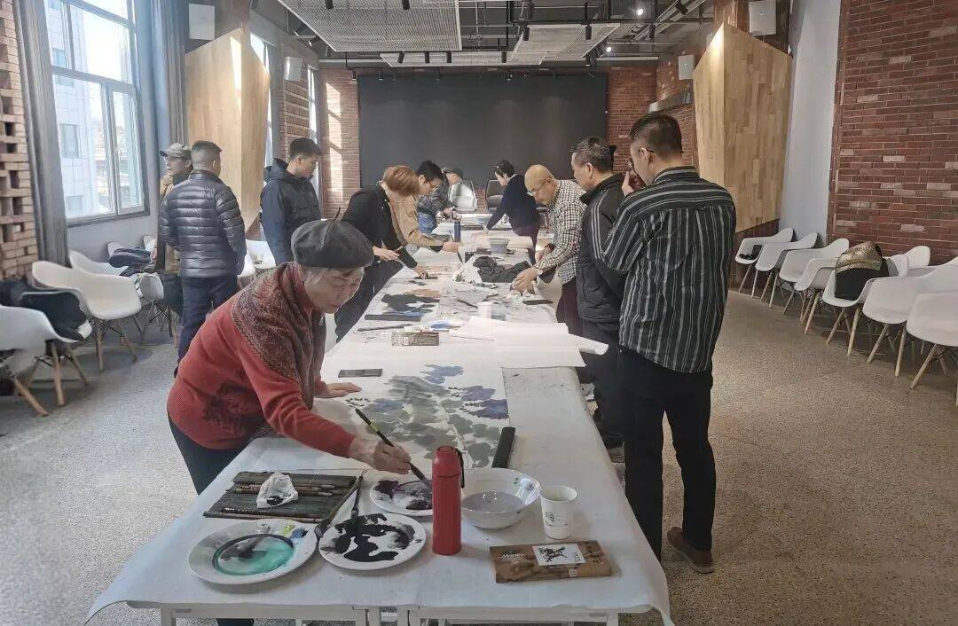 唐浩漩同市政协书画院王炳杰、安赟、徐弘雯立、古仕彬,盟员陶义道、陈月兰、焦彦全、邹紫楠,特邀嘉宾张峰、挥毫泼墨,为财产园及园区企业创做书画做品,传送新春问候。